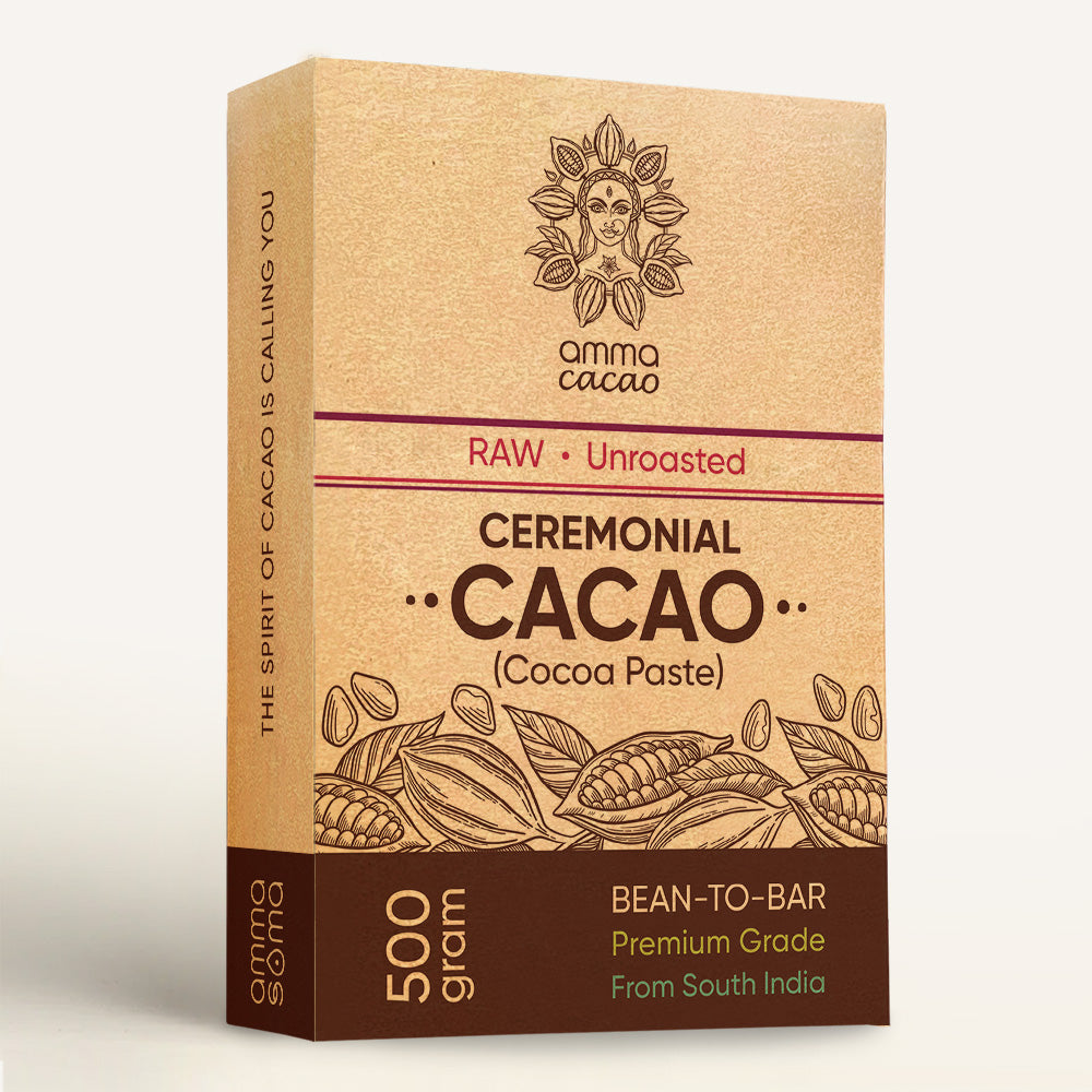 This Amma Cacao is unroasted, expertly fermented, and sun-dried - never processed beyond what nature intended This raw ceremonial-grade cacao is 100% natural, preserving its full spectrum of biological nutrients, antioxidants, and mood-enhancing compounds.
